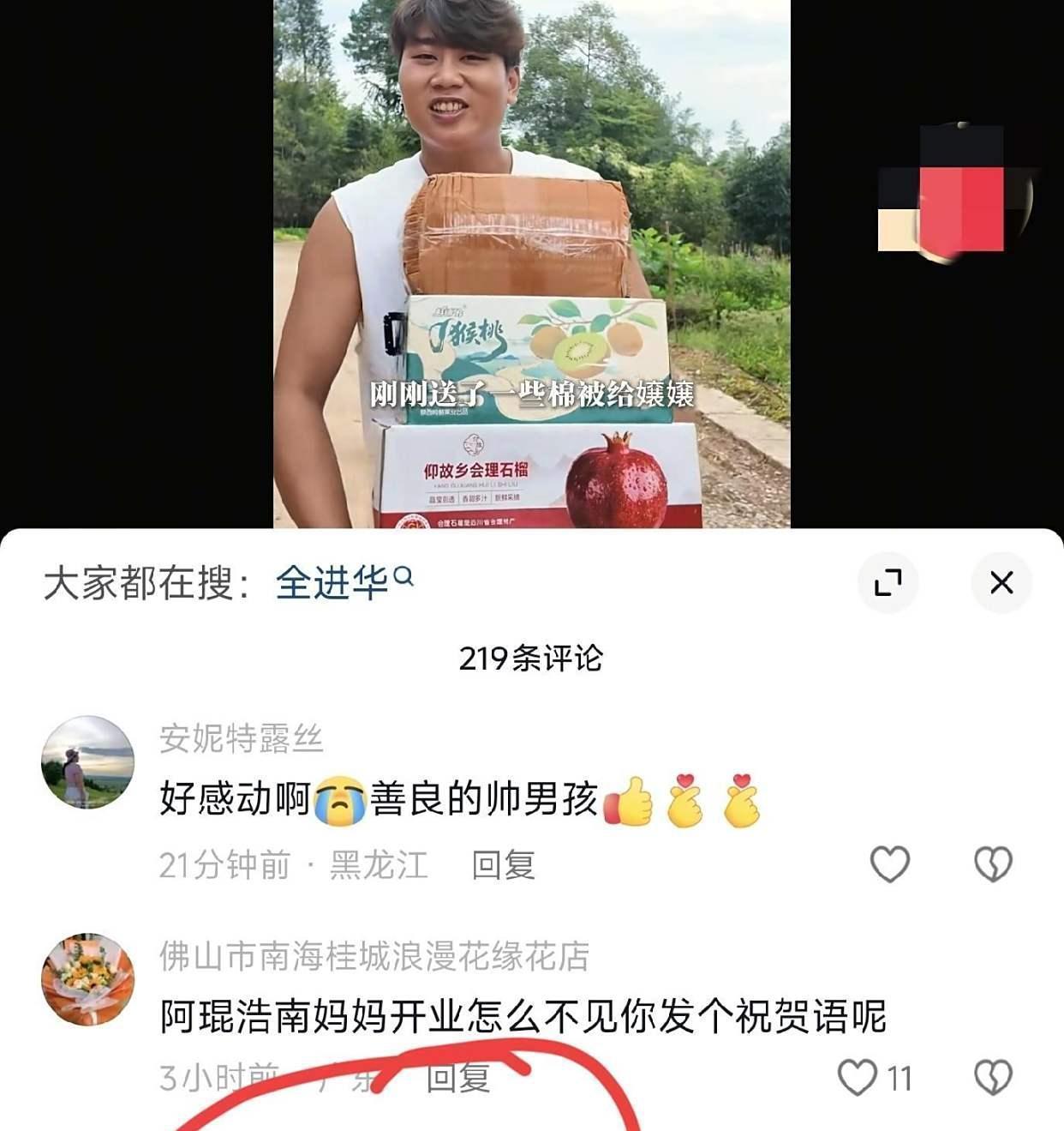 而在这次直播中,还有一个特别的温暖细节让人印象深刻,那就是浩男的战友阿琨的出现。之前就有不少网友在阿琨的社交平台留言,询问他是否会去参加浩男妈妈公司开业的仪式。但是直到10月6日,阿琨才发出自己出席的现场视频。这个小细节被大家注意到了,也成功戳中了不少人的内心。